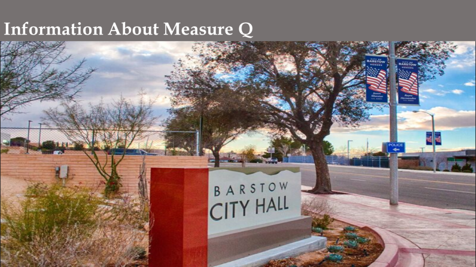 On July 16, 2018, the Barstow City Council voted unanimously to place Measure Q, a public safety and city services measure, on the November 2018 ballot.